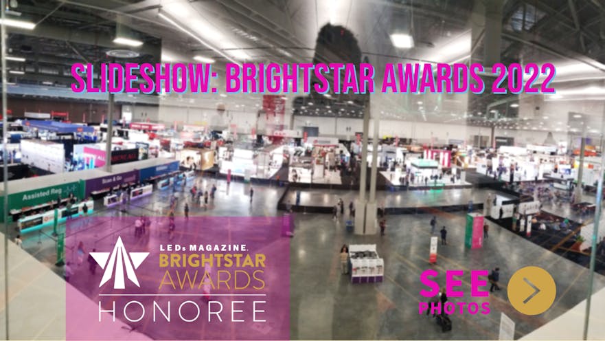 The LEDs Magazine team was happy to be on hand personally delivering BrightStar Awards to exhibiting and attending honorees at LightFair International (Las Vegas, NV; June 19–23, 2022). Of course, companies are usually pleased to receive accolades for their hard work and resulting technology. But even more inspiring was the in-person experience of meeting as many representatives as possible and understanding just how passionate, driven, and motivated they are to continue advancing LED and solid-state lighting with new applications, improved quality and color rendering features, user-friendly controls, and increased return on investment for years to come.